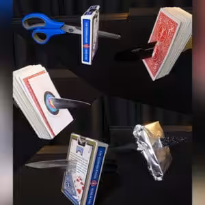 In this new version, you will be able to do the trick anywhere, anytime and in any situation. Now, you don’t need to destroy a card box every time that you perform, you can do it with some papers, napkins, aluminum foil or just… NOTHING! Yes, for first time, you will stab the full deck in front of the audience, in plain view because there is nothing to hide.